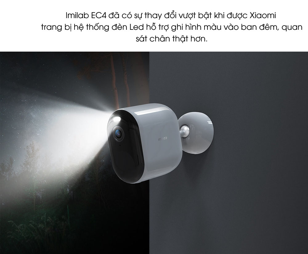 Nếu như ở các phiên bản trước chỉ cho phép ghi hình trắng đen vào ban đêm thì nay trên Imilab EC4 đã có sự thay đổi vượt bật khi được Xiaomi trang bị hệ thống đèn Led hỗ trợ ghi hình màu vào ban đêm, quan sát chân thật hơn. Bạn có thể bật thủ công tính năng này khi thiết bị được kết nối với App hoặc camera sẽ tự động kích hoạt khi phát hiện chuyển động bất thường.