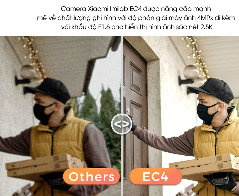 Camera Xiaomi Imilab EC4 được nâng cấp mạnh mẽ về chất lượng ghi hình với độ phân giải máy ảnh 4MPx đi kèm với khẩu độ F1.6 cho hiển thị hình ảnh sắc nét 2.5K. Bằng việc nâng cấp này người dùng có thể xem ghi hình trực tiếp với hình ảnh rõ ràng chi tiết hơn so với các phiên bản trước.