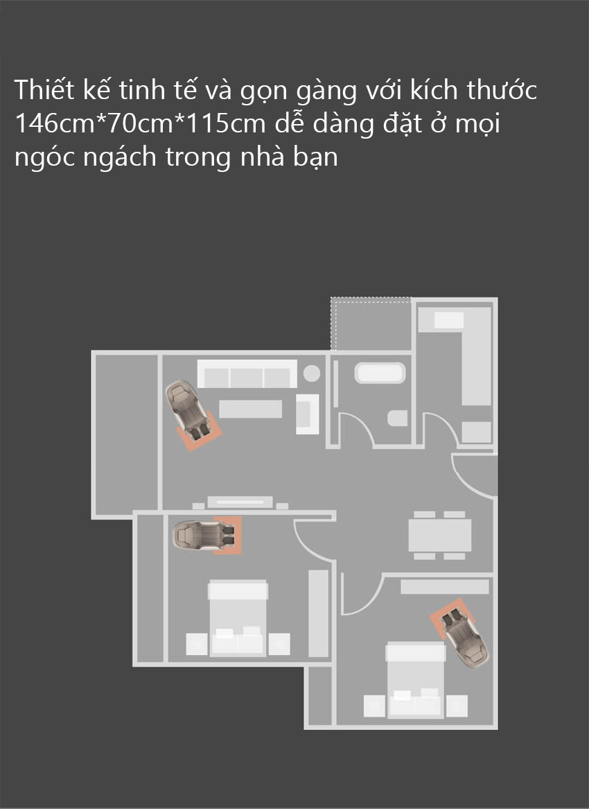 Trọng lượng cơ thể được phân bố đồng đều trong ghế massage, bạn dễ dàng thưởng thức hệ thống treo cơ thể trôi nổi lơ lưng như trên không, để tận hưởng cảm giác thoải mái và thư giãn khi massage sau nhưng phút giây mệt mỏi.