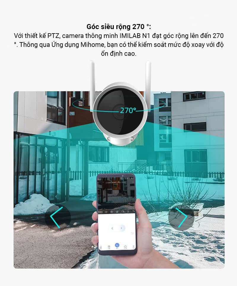 Với thiết kế PTZ, camera thông minh IMILAB EC3 đạt góc rộng lên đến 270 °. Thông qua Ứng dụng Mihome, bạn có thể kiểm soát mức độ xoay với độ ổn định cao.