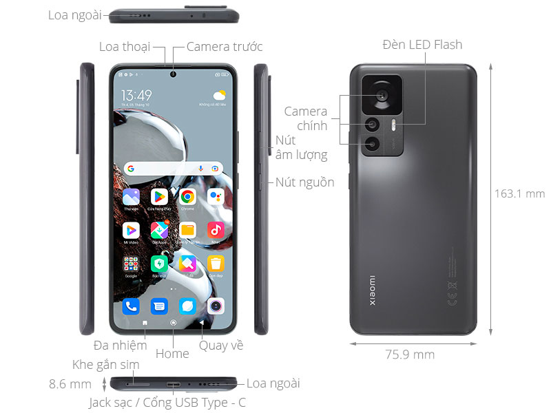Xiaomi 12T có thiết kế khá tương đồng với thế hệ tiền nhiệm, mặt lưng được làm bo cong ở hai cạnh kèm theo một dòng chữ “Xiaomi” bố trí ở góc dưới phần thân máy.