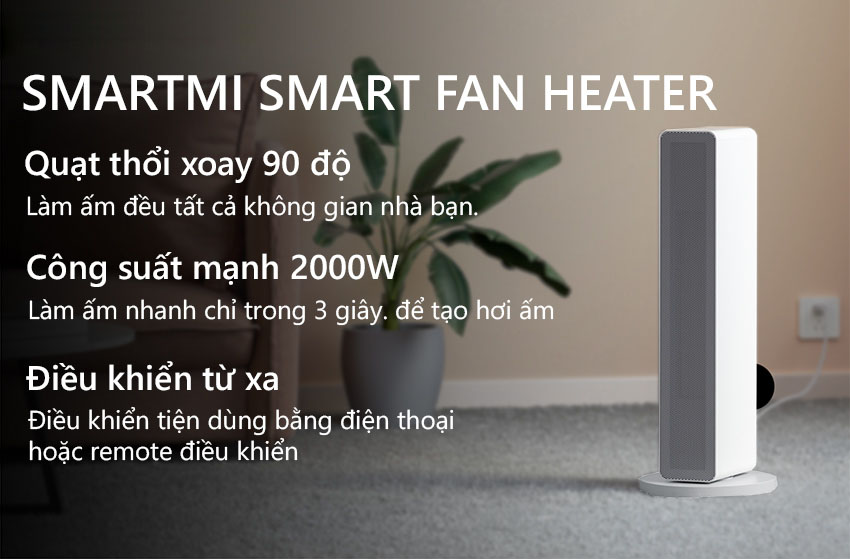 Với hệ thống quạt sưởi và góc xoay 90o giúp làm ấm chủ động hơn, chỉ cần bật máy lên là bạn có thể cảm nhận ngay hơi ấm được lan toả ngay tức khắc. Giúp thời gian làm ấm nhanh và hơi nóng được lan toả đều mọi ngóc ngách trong căn phòng của bạn.